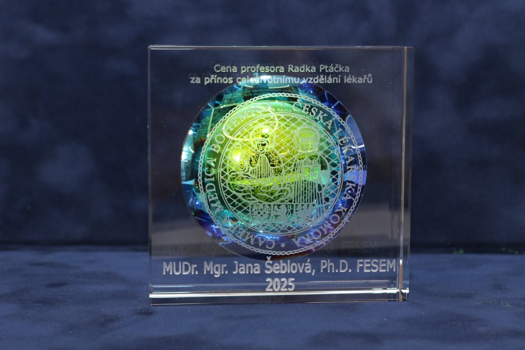 Cenu prof. Radka Ptáčka za vzdělávání lékařů pro rok 2025 obdržela MUDr. et Mgr. Jana Šeblová, Ph.D., FESEM. Gratulujeme.